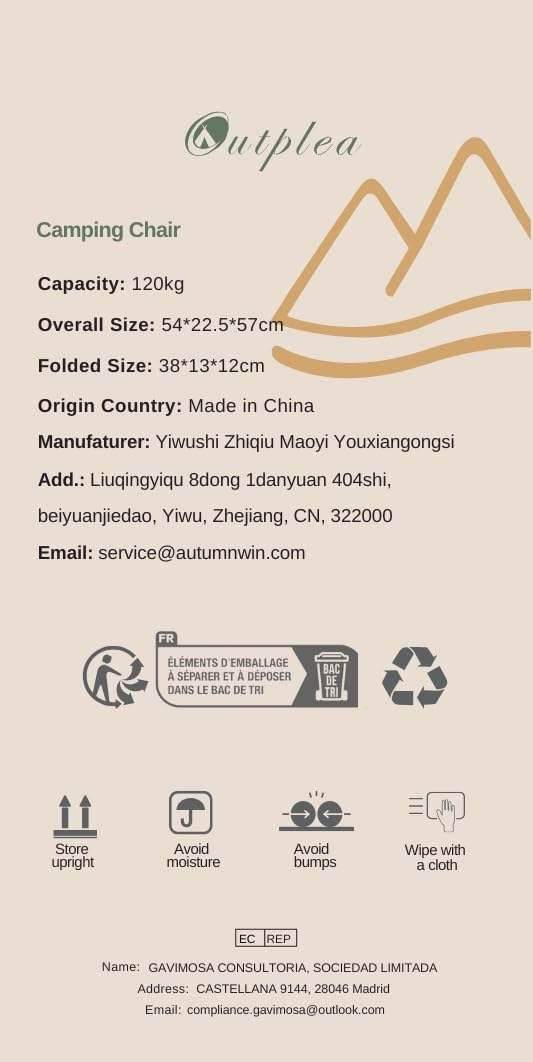 Lightweight and compact, the Outplea camping chair is perfect for hiking, travel, or the beach. Designed for adults, it offers sturdy comfort, easy folding, and portability for any adventure.